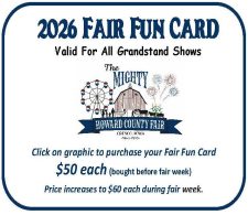 The purchase of a Fair Fun Card allows admission to all of the grandstand events during Fair week.